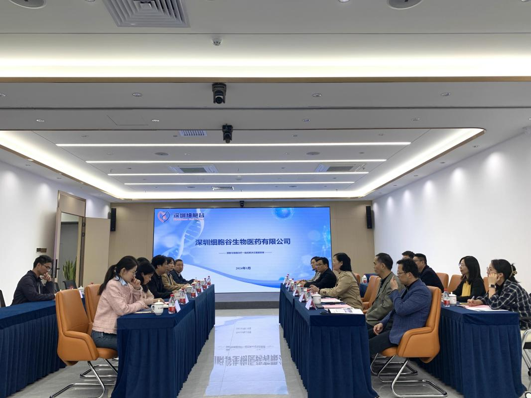 On the afternoon of March 7, 2024, Zhu Meiling, President of Shenzhen Hospital of Traditional Chinese Medicine, Chen Sheng, Director of Oncology, Yang Zhenjiang, Director of Respiratory, Xie Wei, Director of splenic and Gastric, Guo Shaoju, Director of GCP Office, Liu Yu and others visited Shenzhen Cell Valley. Shi Yuanyuan, Chairman of our company, Wang Jianxun, chief scientist, and Tang Xiaomeng, deputy general Manager of our company received them warmly.
