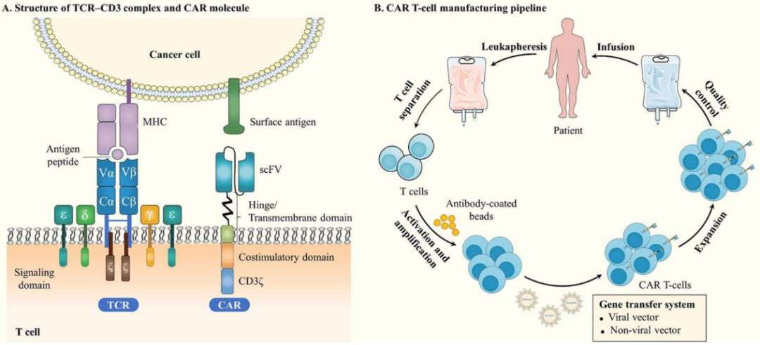图1 CAR结构与CAR-T治疗流程